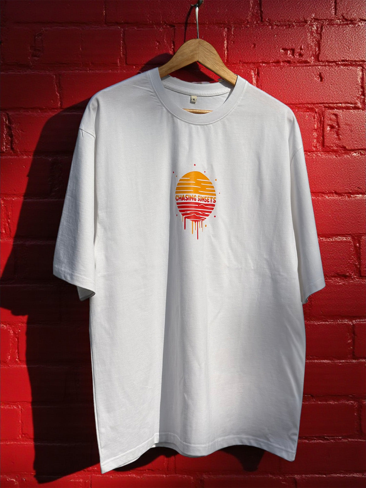 Some moments are too beautiful to end. This tee is for the adventurers, the optimists, and anyone who lives for that golden hour. The "Chasing Sunsets" Oversized Tee captures that feeling of endless possibility and warm, sun-drenched moments.